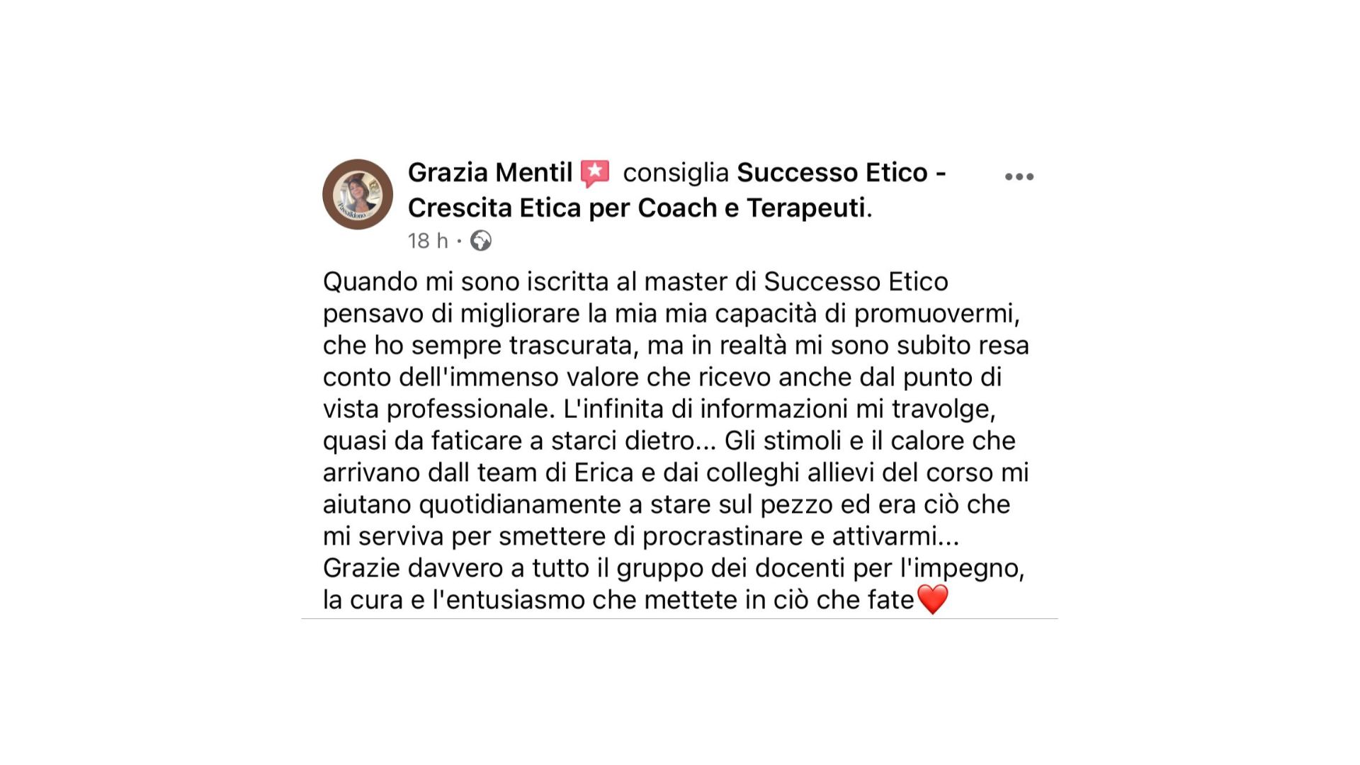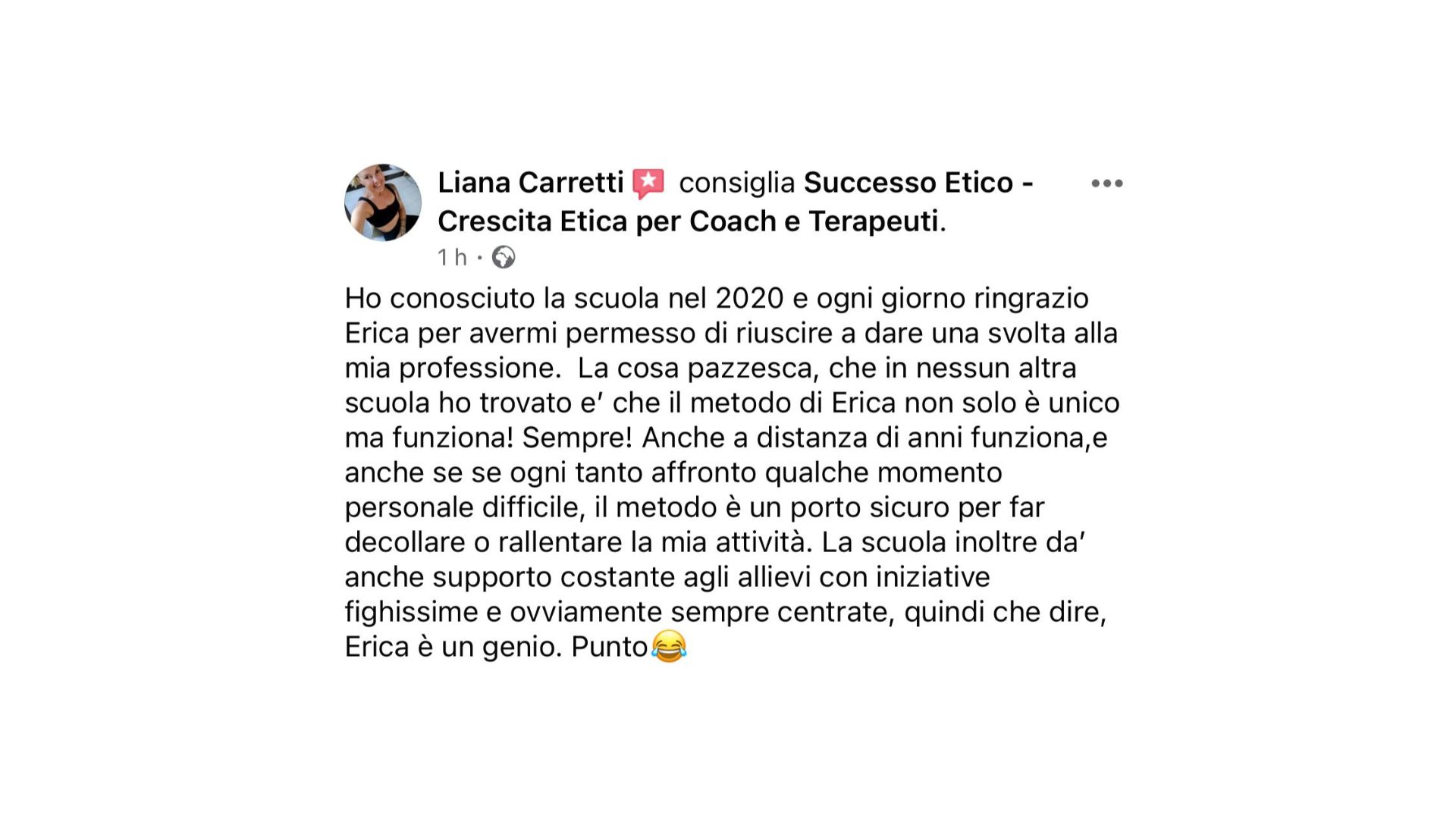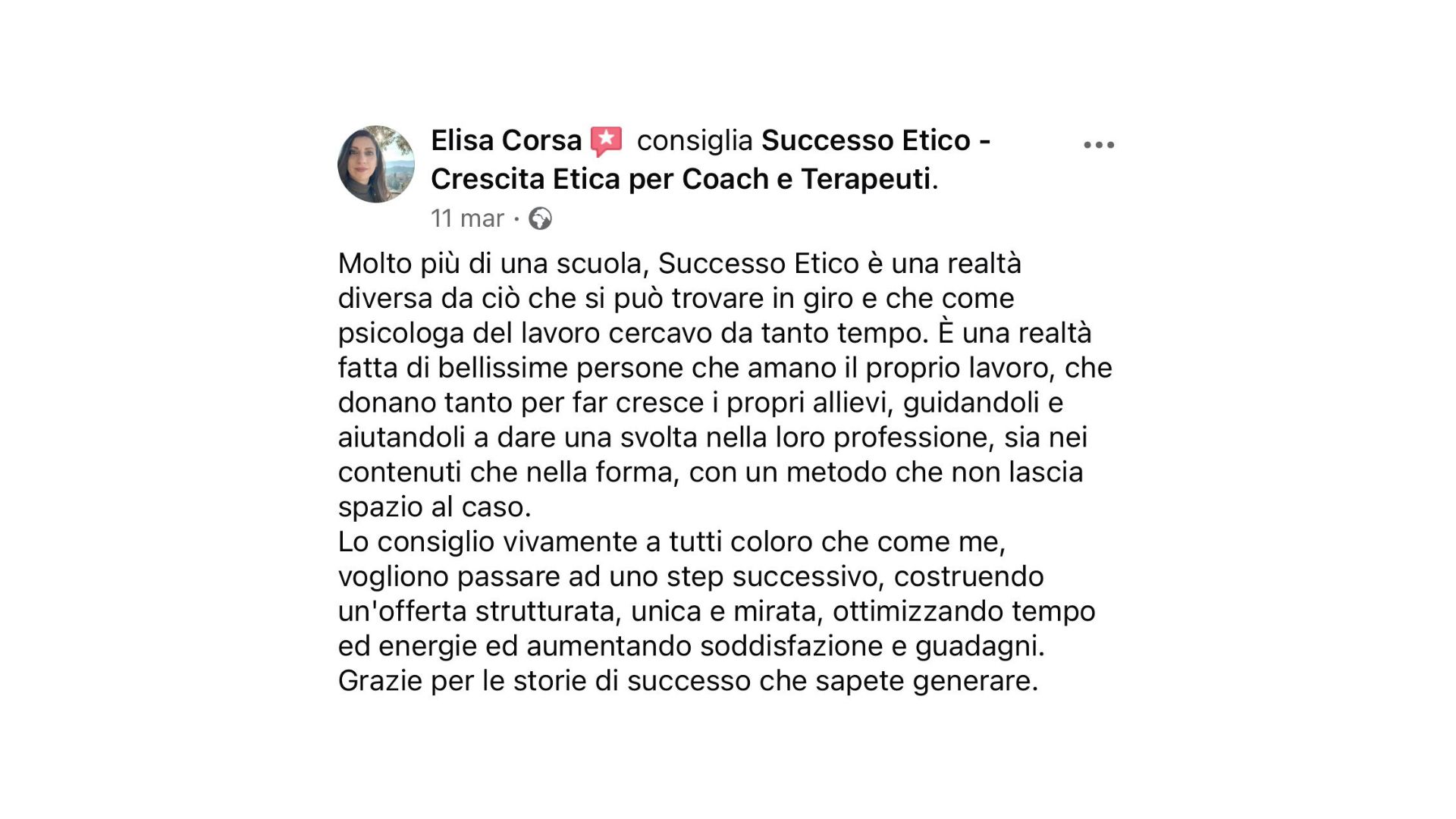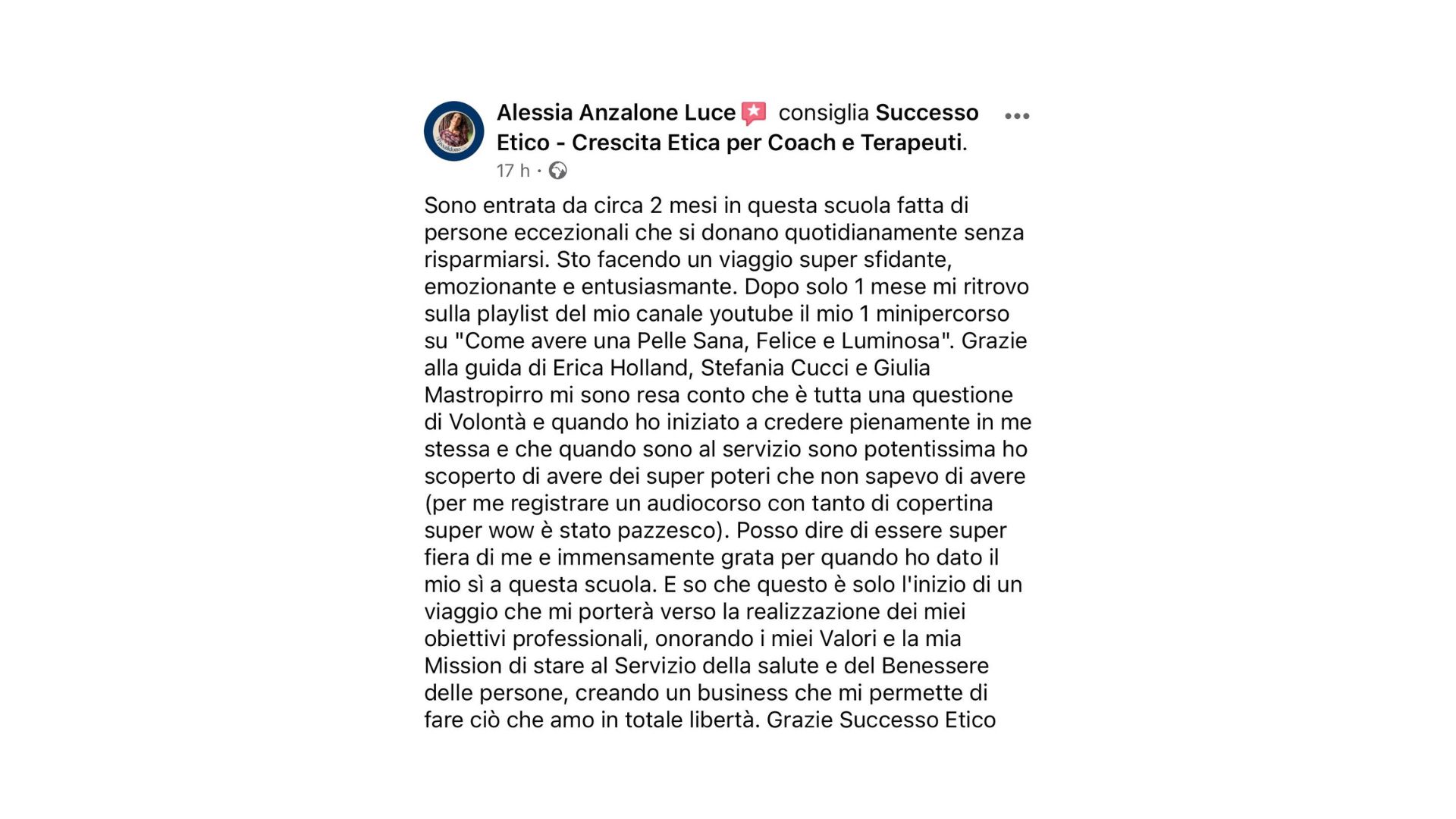 "...Ogni anno con SUCCESSO ETICO ho raddoppiato il fatturato. Sono passata da un part time a fondare la mia SRL con centinaia di persone aiutate"