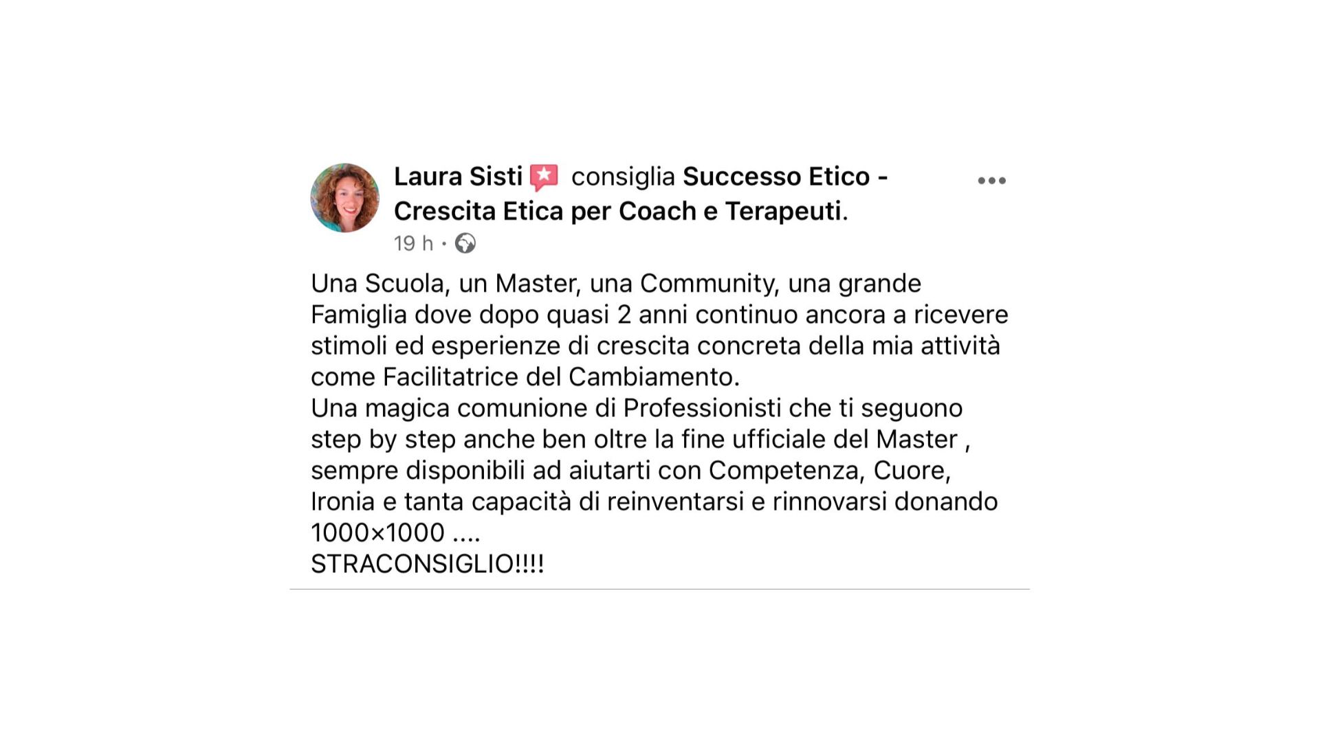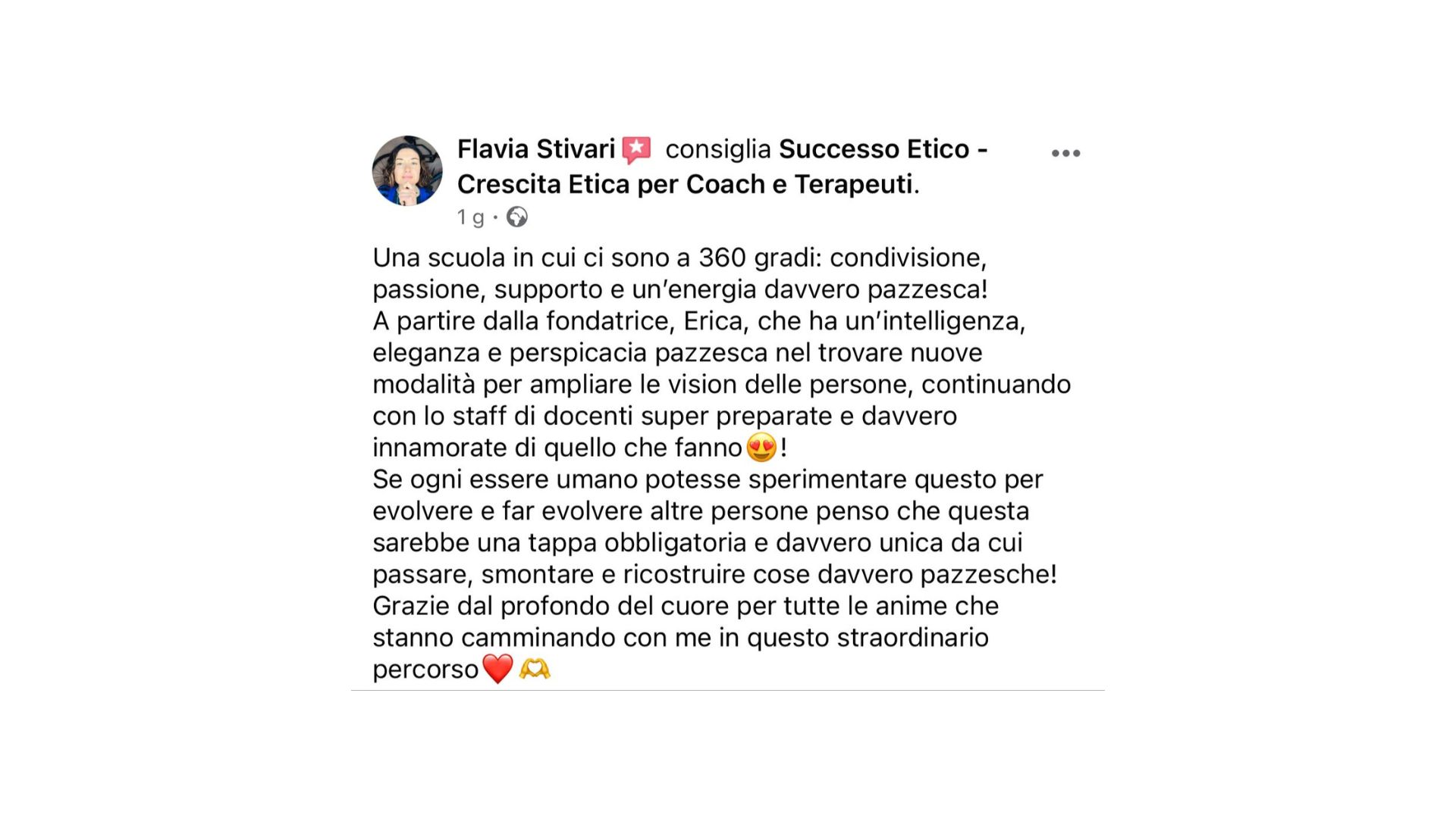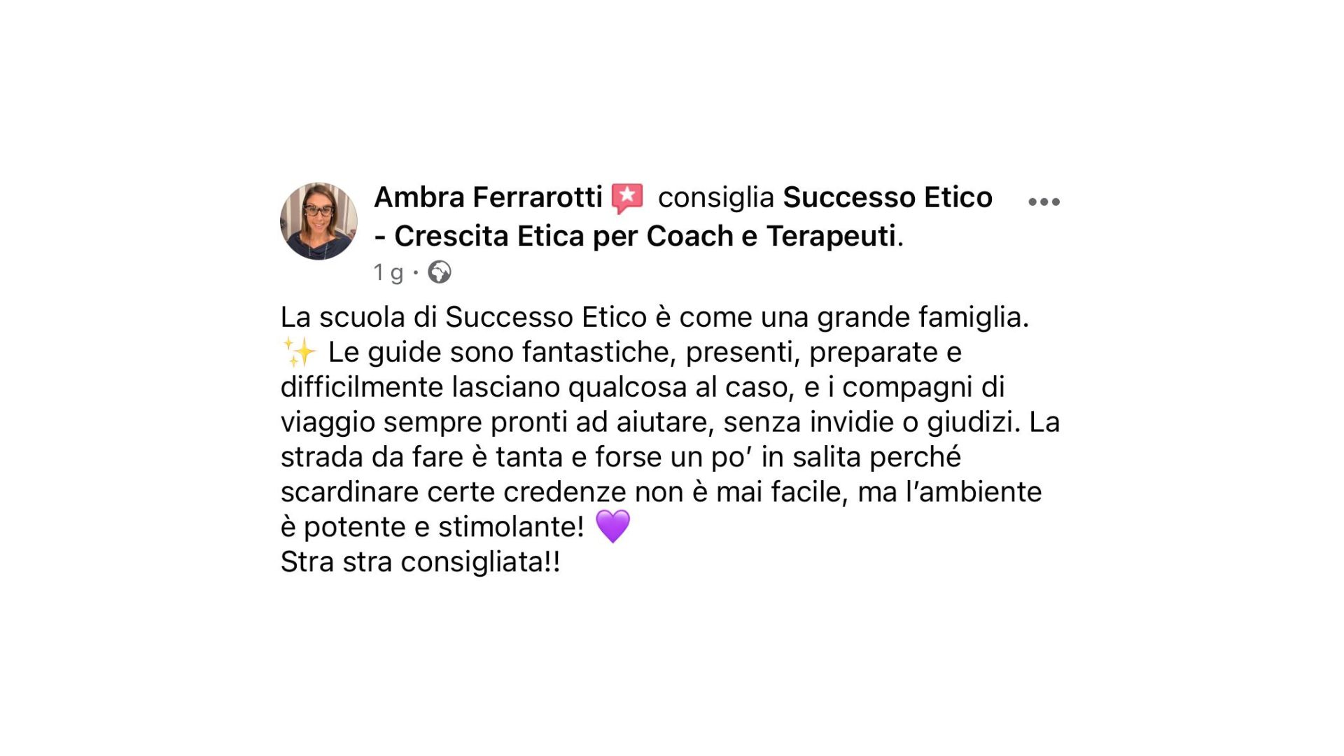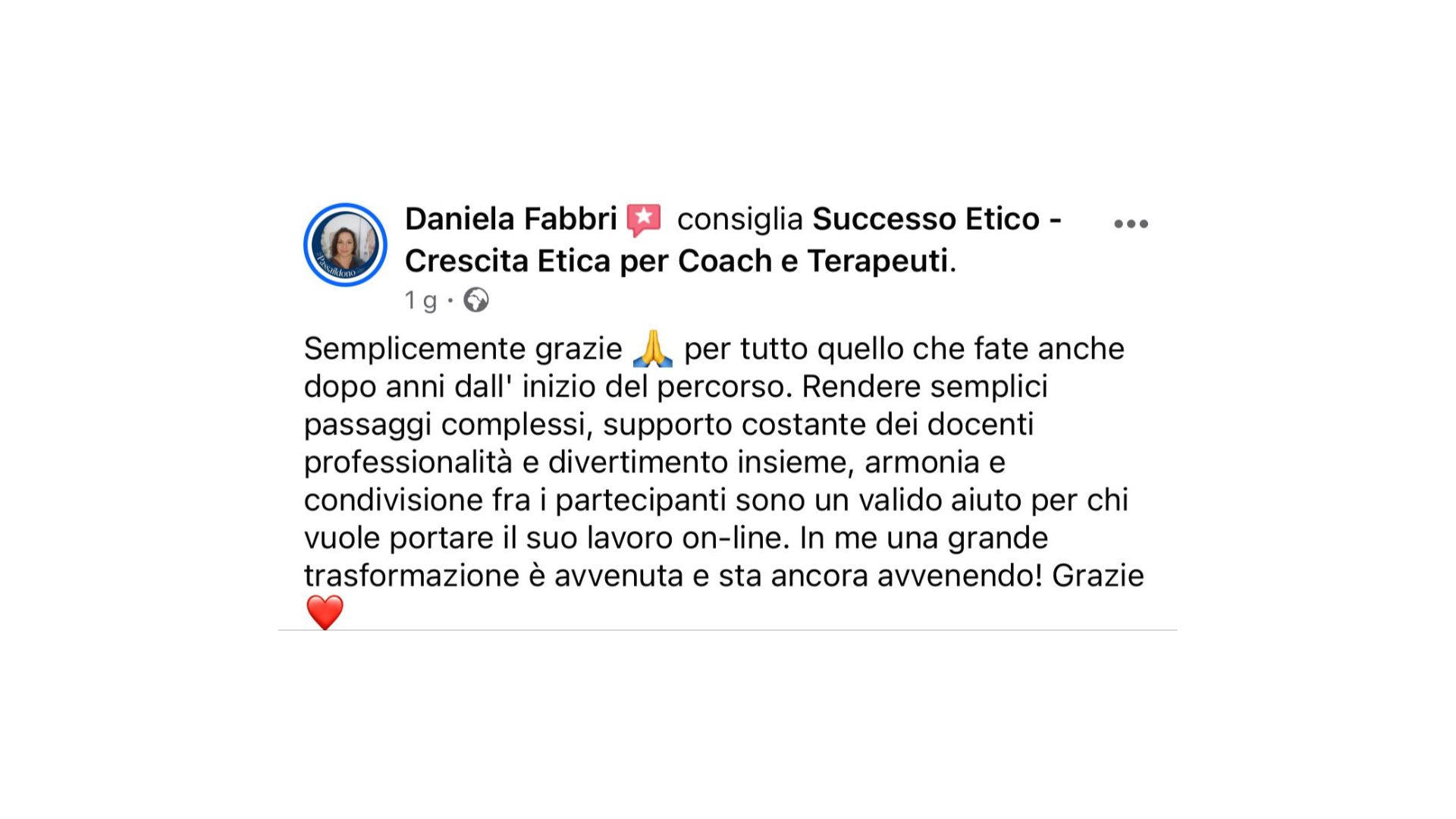 "...Ogni anno con SUCCESSO ETICO ho raddoppiato il fatturato. Sono passata da un part time a fondare la mia SRL con centinaia di persone aiutate"